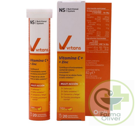 Complemento alimenticio con Vitamina C y Zinc, que contribuyen al funcionamiento normal del sistema inmunitario y protegen las células frente al daño oxidativo.